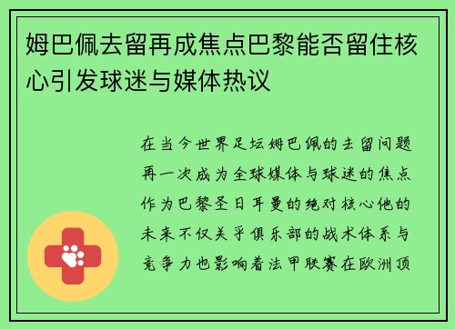 姆巴佩去留再成焦点巴黎能否留住核心引发球迷与媒体热议